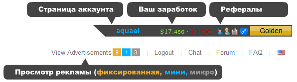Your Payment- заказ выплаты. Вначале она серая, но когда вы наберёте минимум для заказа – она станет зелёной. Минимум для первой выплаты $2, и после каждой выплаты он увеличивается на $1, до максимум $10 – и после этого он всегда будет $10.