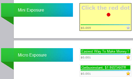 Mini и Micro Adverticements- реклама от пользователей, стоимостью 0.05 и 0.01 цента за клик